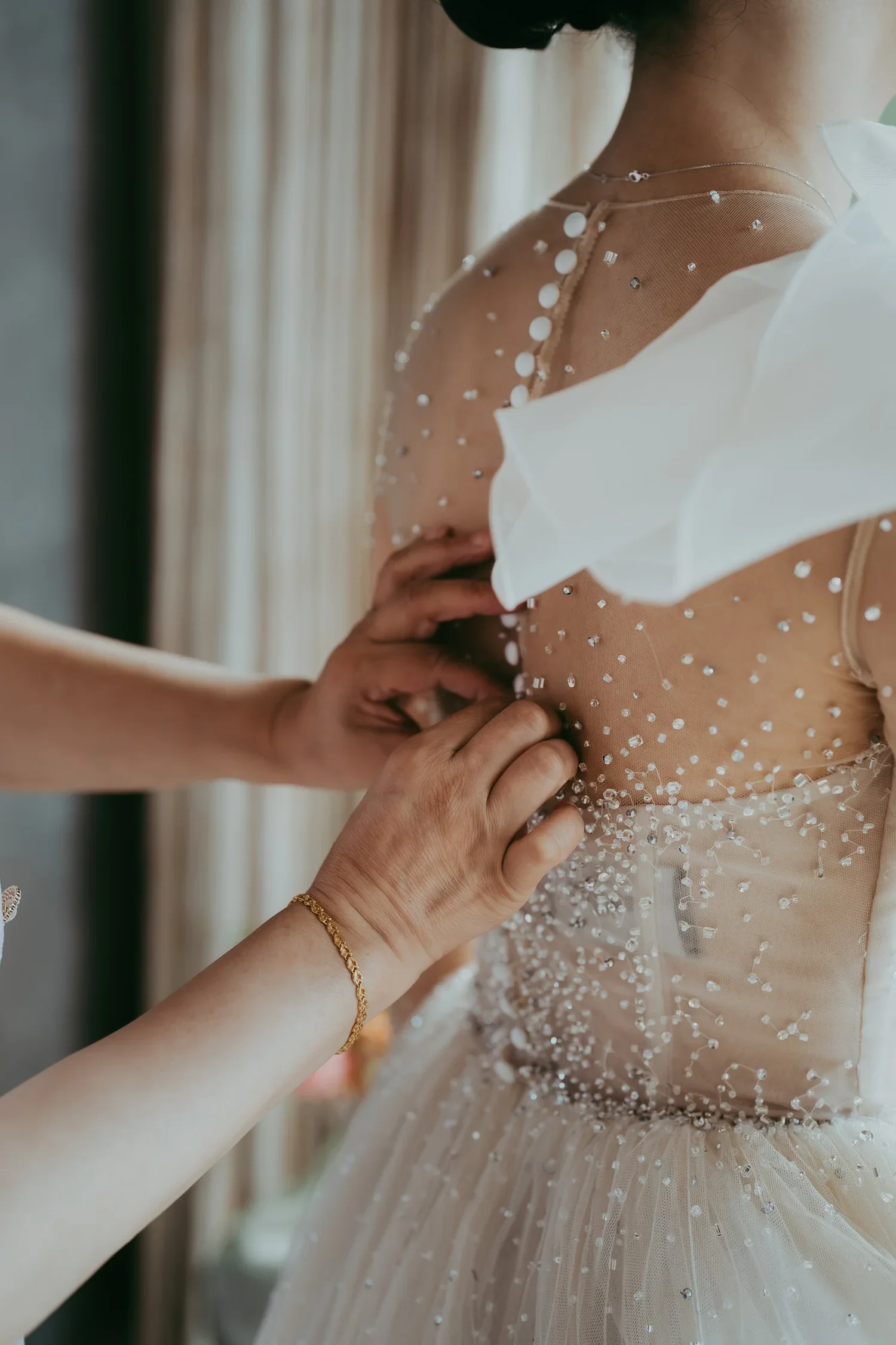 Getting ready is a very important part of the wedding day. It sets the tone and marks the beginning of your story. This is when everything starts to feel real, the quiet moments, the anticipation, and the transition into the day you’ve been planning. I’m hands-on during this time, guiding you gently while allowing space for the moments to unfold naturally. I will start with make-up photos, just a few clicks, then I will focus on the dress and the details and once the hair and makeup is close to be done, I will get back for more pictures.